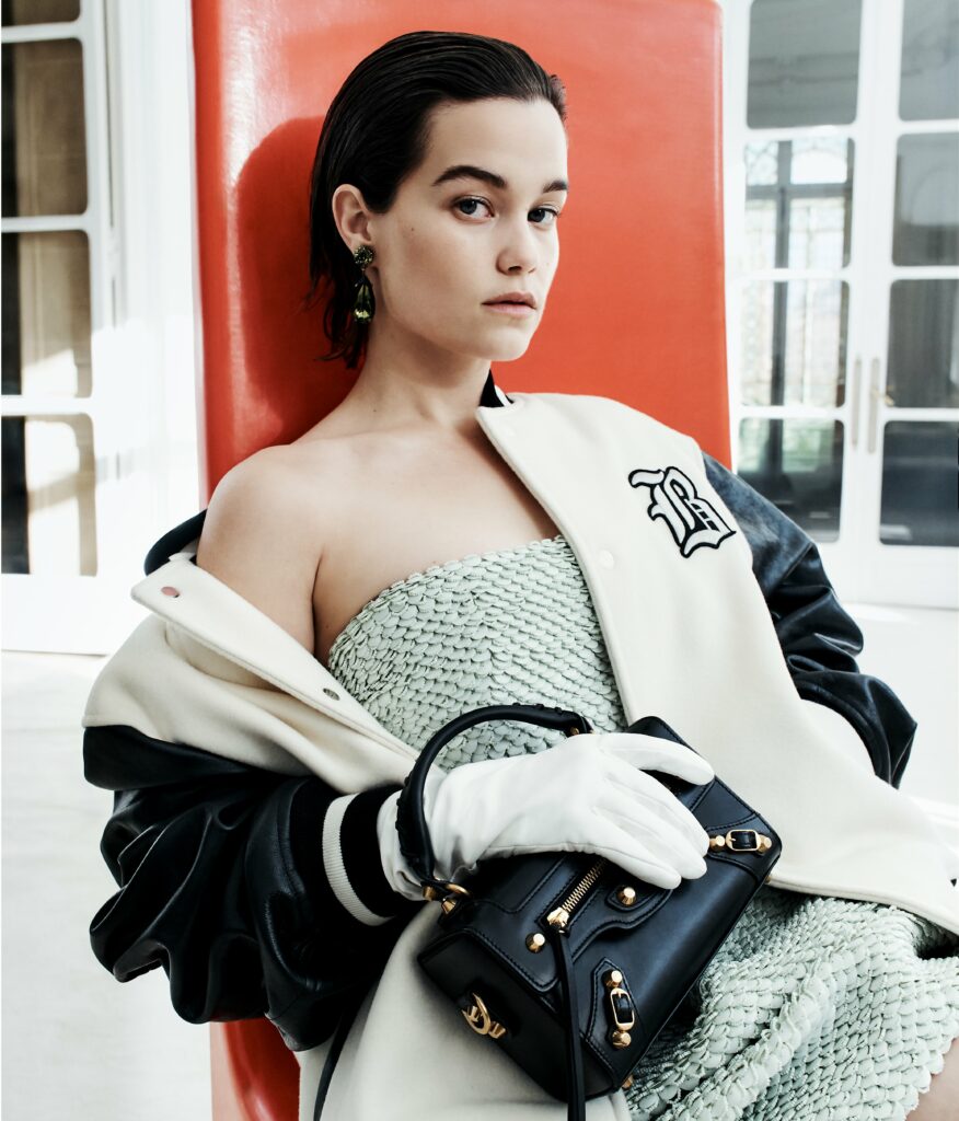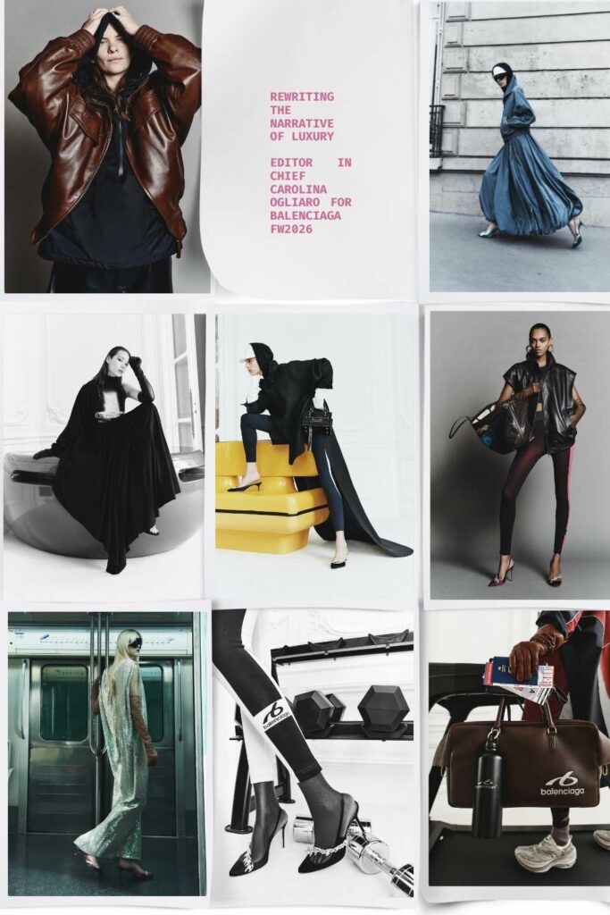 Likewise, the new Balenciaga woman retains an unmistakable strength, bold, refined, and unashamedly modern. Opera gloves and cowled hats ripple across gym sets and streetwear, recontextualizing elegance as a living, breathing act.
