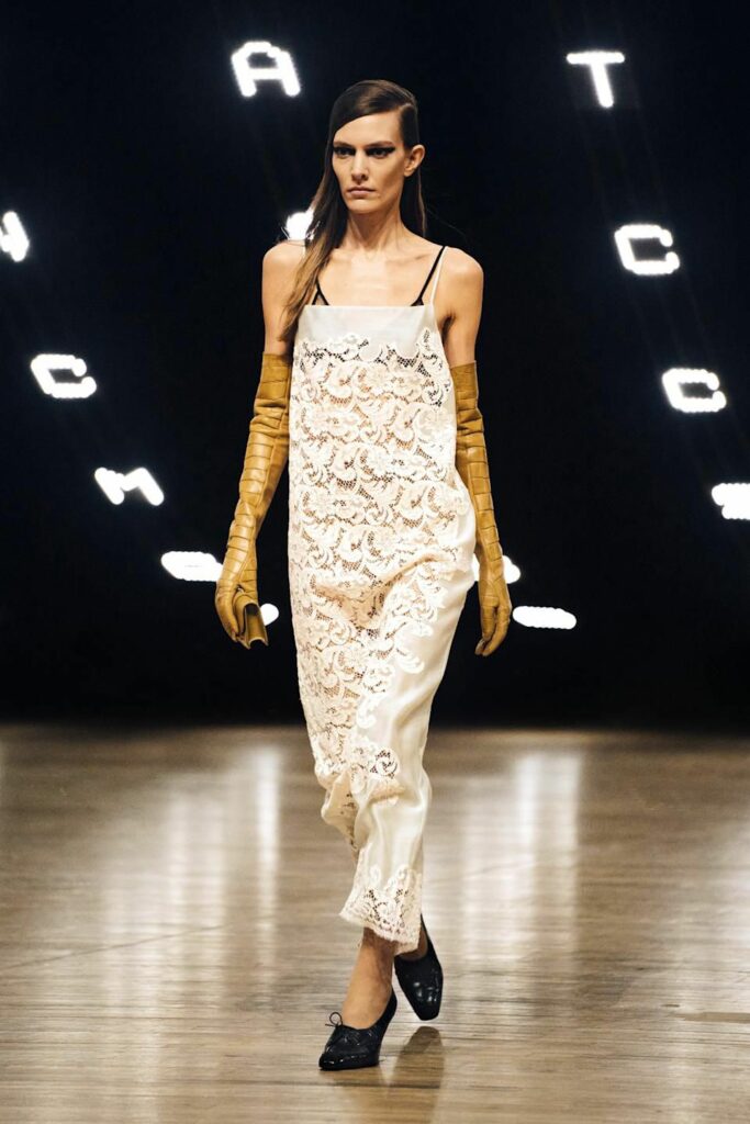Khaite’s show was a synthesis of exquisite materials, artisan techniques, and decisive flourishes that never settled for surface novelty but insisted on structural rigor. Coats and outer layers, sharply cut yet bearing the gravity of tactile weight, opened the runway, establishing a vertical discipline that threaded through the entire lineup. Beneath them, trousers and dresses oscillated between fluidity and control; there was a sense that every silhouette had been considered not as a statement but as a proposition, measured against volume, tension, and the body in motion.