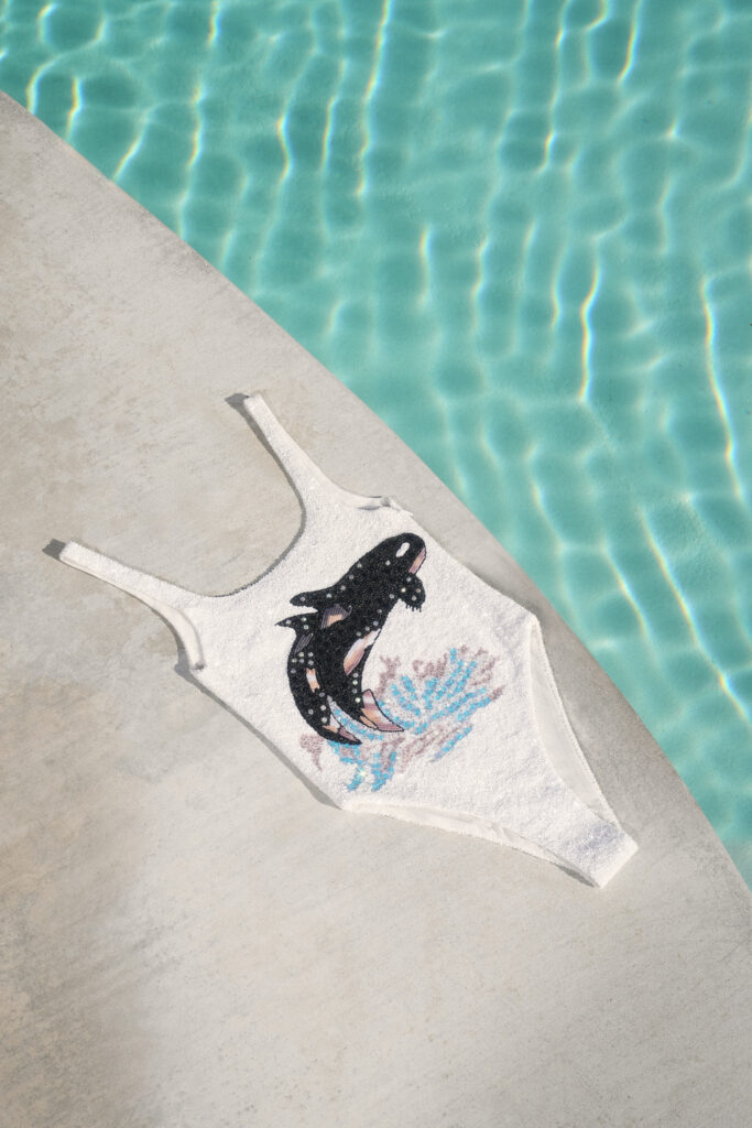 Launched in London in 2018, Oceanus began with the radical proposition that swimwear could carry the charge of eveningwear. What followed was a new lexicon of embellishment: Swarovski crystal constellations on body-sculpting silhouettes, embroidery that feels less like decoration and more like storytelling, and palettes that refuse to fade into the background. Each piece is handmade in small quantities, aligning exuberance with sustainability, proving that maximalism and responsibility are not contradictions but collaborators.