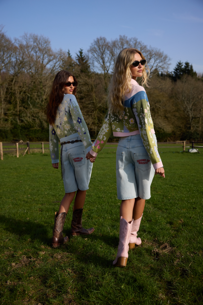 Elsewhere, House of Sunny continues to build on its signature language. The new floral Tripper knits, already a recognizable code within the brand’s universe, return with a softened edge, joined by layered tops, jorts, and fluid silhouettes that prioritize movement between environments.