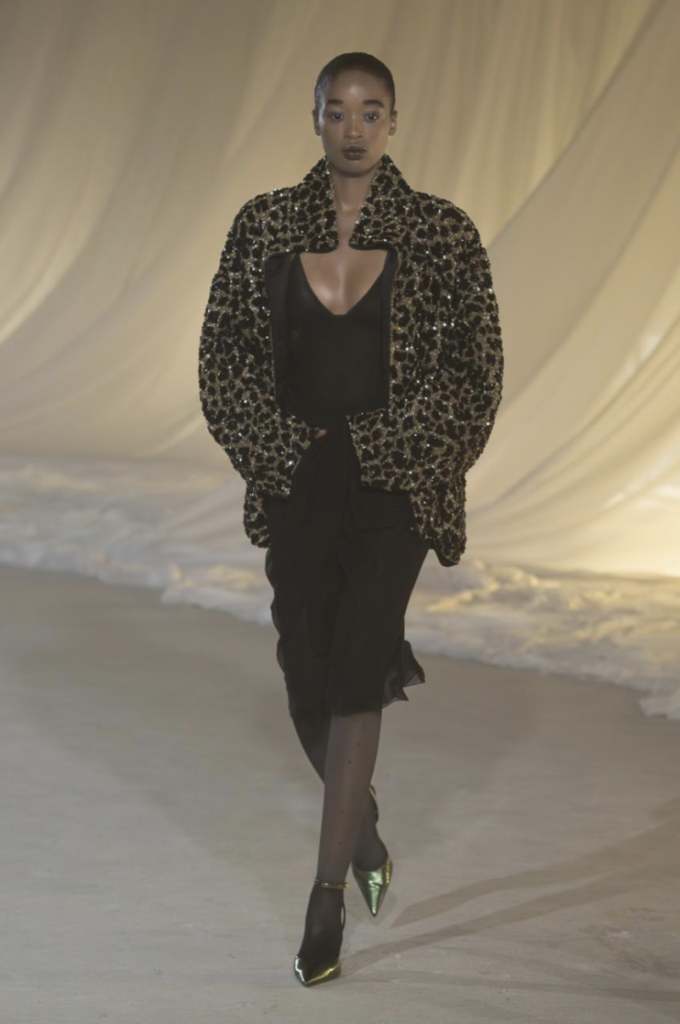 Mr. Tron, an alumnus of Louis Vuitton, Givenchy, and Balenciaga and creative director of ATLEIN, is a designer who understands the power of the cut over the power of the crystal. His vision, titled “Film Noir Version 2.0,” was a sophisticated recalibration of the house’s codes. It was a collection that looked back to the postwar sensuality of Pierre Balmain’s 1946 debut but filtered it through a lens of 1980s power dressing and a contemporary sense of ease.