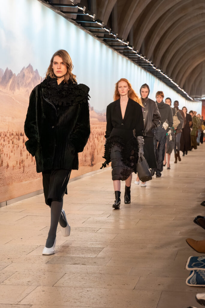 The collection builds itself around this emotional geography. Everything feels like a memory reinterpreted: the fuzzy warmth of a childhood sweater, the ease of oversized outerwear, the cocooning presence of fabrics that seem to hug back. Only now, the silhouettes are sculpted, mature, deliberate, nostalgia refined rather than revived.