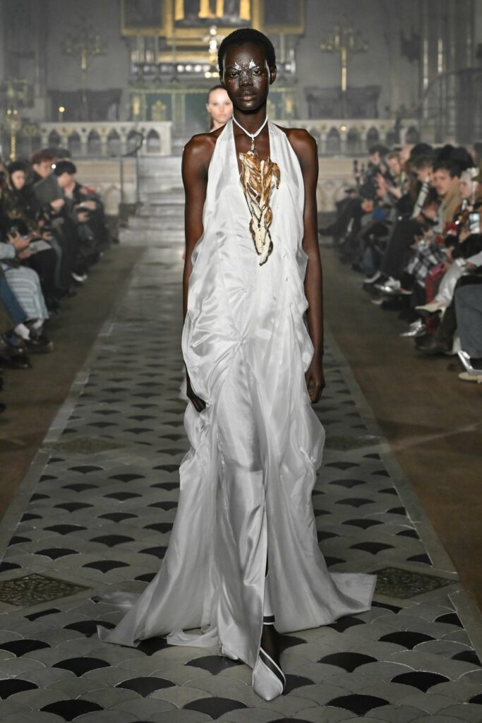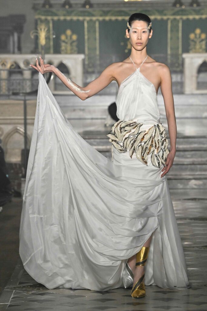 Yuima Nakazato continues to move in the opposite direction of speed and noise. His latest couture proposal does not announce itself with music or theatrical flourish. Instead, it asks for silence or, to be more precise, for listening.