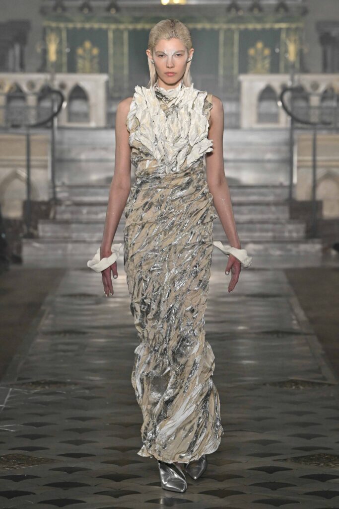 This collection does not seek to dazzle. It does not promise solutions. Instead, it proposes attention… to time, to material, to sound, to the earth itself. In doing so, Nakazato affirms once again that couture’s most radical potential may not lie in spectacle or fantasy but in the ability to slow us down long enough to notice what we usually ignore.